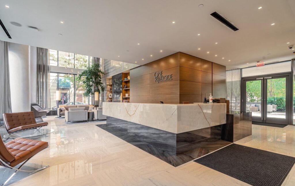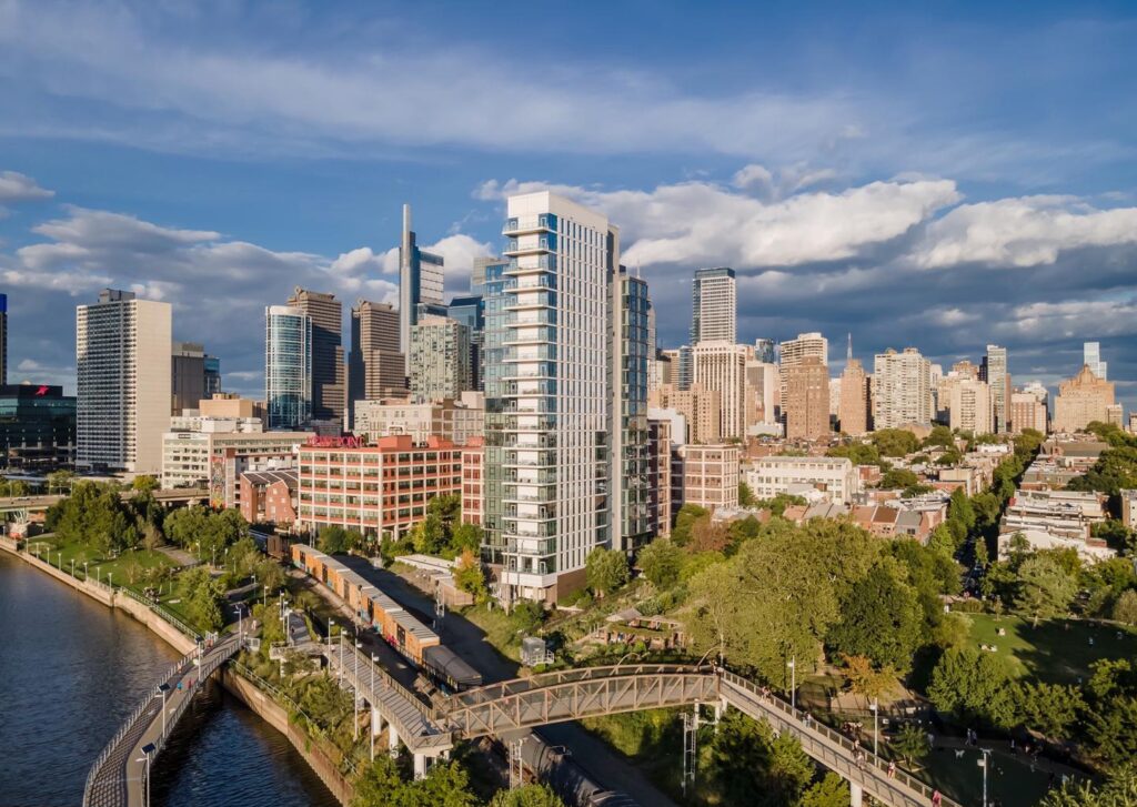 Rising along the scenic Schuylkill River, One Riverside is a modern luxury condo building that combines sleek design with waterfront living. Amenities include a 24-hour concierge, fitness center, residents’ lounge, and a rooftop terrace with stunning river and skyline views.