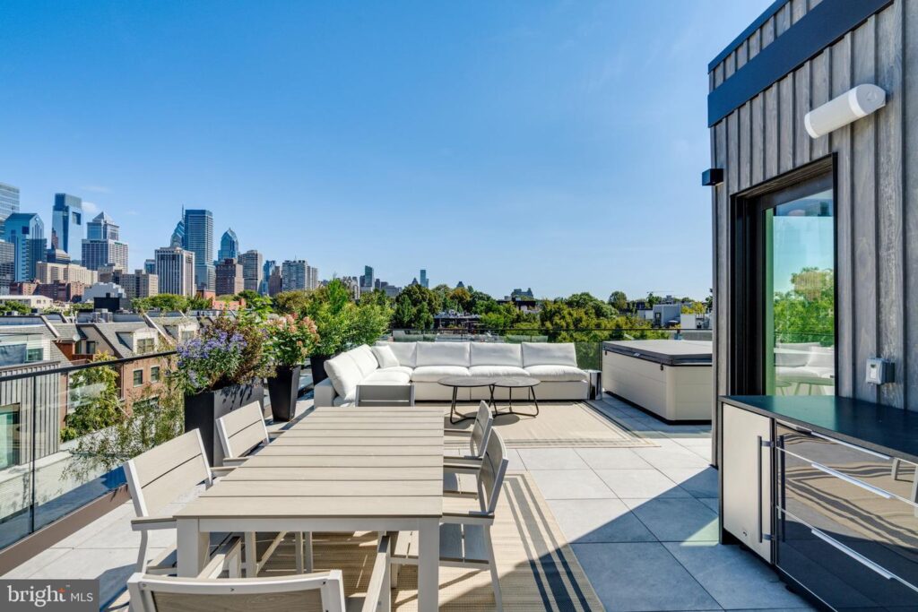 This 30-foot-wide, custom-built townhouse in Fitler Square neighborhood offers the ultimate city lifestyle. With five bedrooms, seven bathrooms, a 3-car garage, elevator, home theater, and multiple outdoor spaces—including a roof deck with a hot tub—this home sets a high bar for modern urban living.